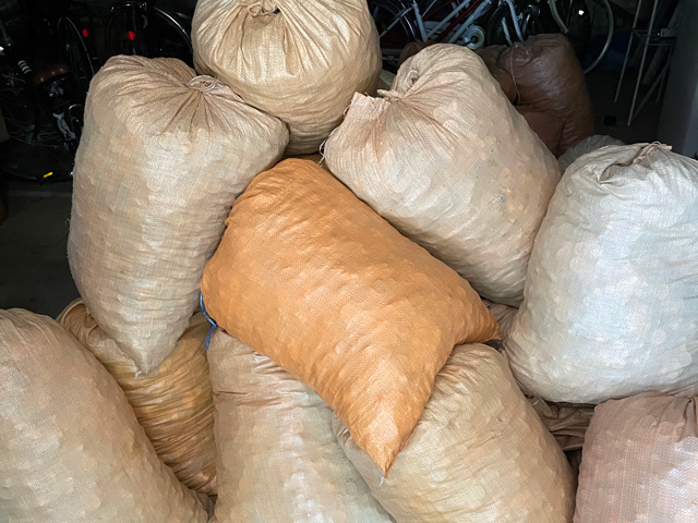 ペットボトルのエコキャップは、エコステーションで回収しており、月に1回の回収作業を行っています。エコキャップを回収することの意義は二つあります。