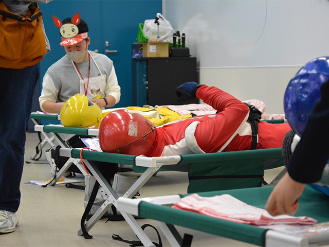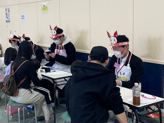 キッズ献血とは、まだ献血ができる年齢ではないものの、将来献血を担う子供たちに対して献血の大切さや献血の方法などを伝え、献血を身近に思ってもらうための活動です。キッズ献血では子供が疑似献血をする「まねっこ献血」のお手伝いを行うなど、赤十字血液センターとも密接にかかわりながら活動しています。令和7年3月20日に日本赤十字社三重県支部と3月23日に四日市地域総合会館あさけプラザにて開催されました。3月20日に開催されたキッズ献血ではまねっこ献血だけではなく赤十字ボランティアブースなど、楽しく体験して学べる企画が開催されました。