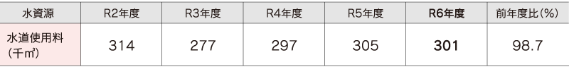 下表は上浜キャンパスにおける水資源投入量(水道使用量)をまとめたものです。