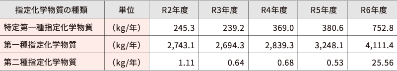 化学物質の取り扱い量