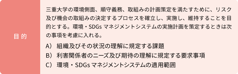 「三重大学環境・SDGsマネジメントマニュアル」6.1 リスク及び機会への取組みより