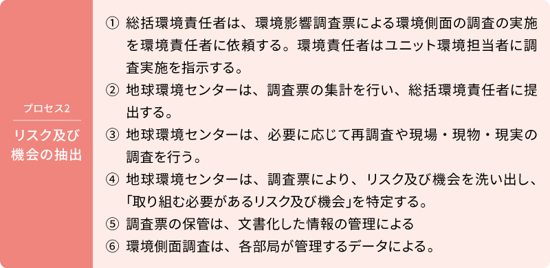 本学の環境に関連した活動のリスクへの取り組みプロセスについては、次のとおりです。