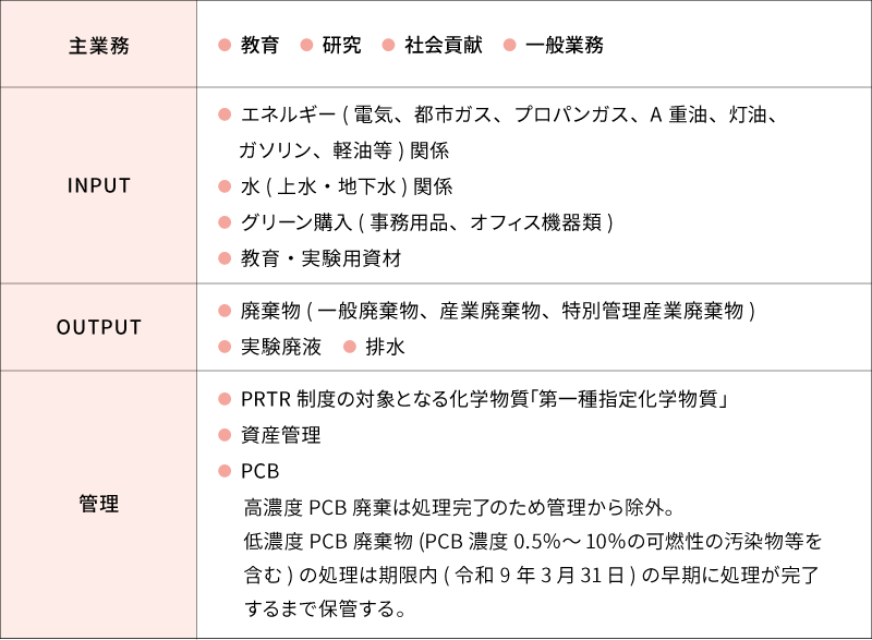本学の環境に関連した活動のリスクについては、次の目的をもって決定します。