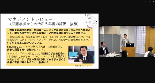 第2部では本学の教職員対象の研修会として、省エネおよび環境・SDGsマネジメントマニュアルに基づき行われました。各部局の環境責任者・副環境責任者・ユニット環境担当者・ECOキーパーなど、教職員53名が参加しました。