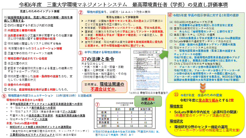 令和7年度は、教職員の環境マインドの維持に努めながら、環境・SDGsマネジメントシステムの運用をすること。 - その他インプット情報による見直し結果