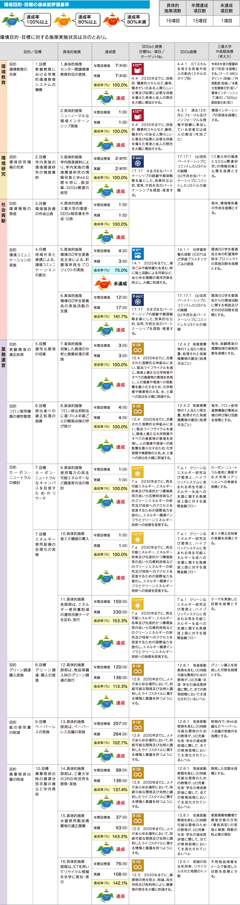 環境目的・目標および具体的取り組みの達成度と関連するSDGs